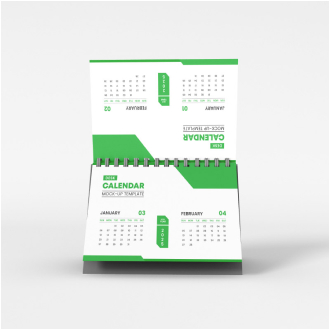 Производство и сглобяване на настолни календари с картонена основа. Предлагаме пълна довършителна обработка – сгъване, лепене и монтаж на календарни тела.